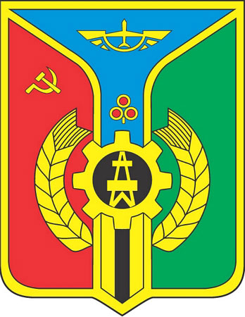 Герб Бугуруслана, принятый 16 июня 1982 года. Щит разделен на три части, в верхней лазуревой части — авиационная эмблема и червленый стилизованный цветок под ним; в червленом поле вверху золотые серп и молот. Поверх всего золотая шестерня, окружающая черный круг с контурами нефтяной вышки, в обрамлении золотых колосьев.