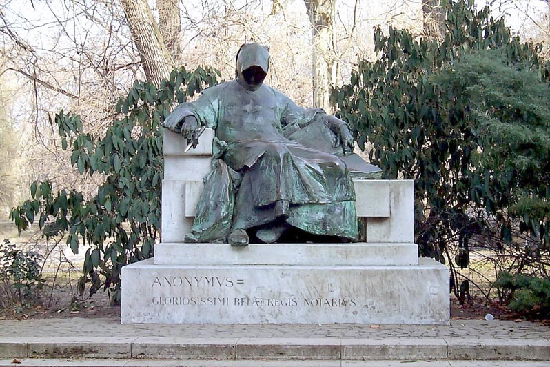 Будапешт. Скульптура «Анонимус» (в память неизвестного венгерского летописца), работы Миклоша Лигети в Варошлигете. 1903 г.
