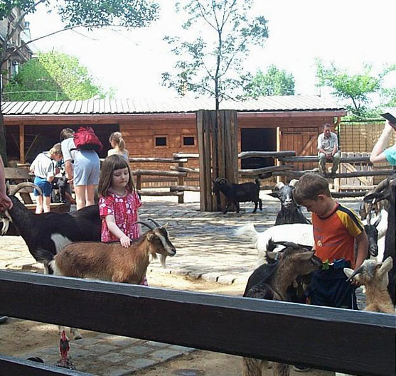 Загон для домашних коз в Будапештском зоопарке. Коз разрешается кормить и гладить.
