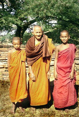 Старый монах с юными послушниками. Бирма.