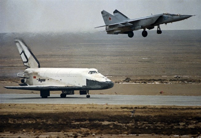 Посадка «Бурана» в сопровождении «МиГа». 15 ноября 1988 года.