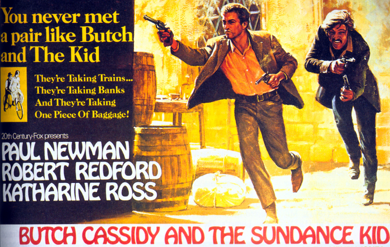 Плакат фильма Джорджа Роя Хилла «Буч Кессиди и Санденс Кид» с участием Пола Ньюмена и Роберта Редфорда. 1969 год.