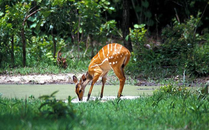 Самка бушбока у водопоя.