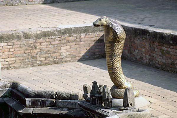 Каменная змея в дворике старого королевского дворца. Бхактапур.