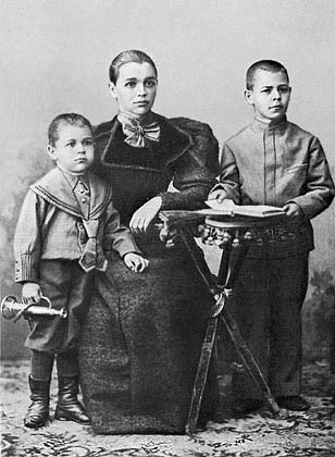 А. М. Вавилова с сыновьями Николаем (справа) и Сергеем. 1896.