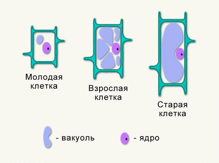 Размер и форма вакуоли варьируются в зависимости от возраста клетки.
