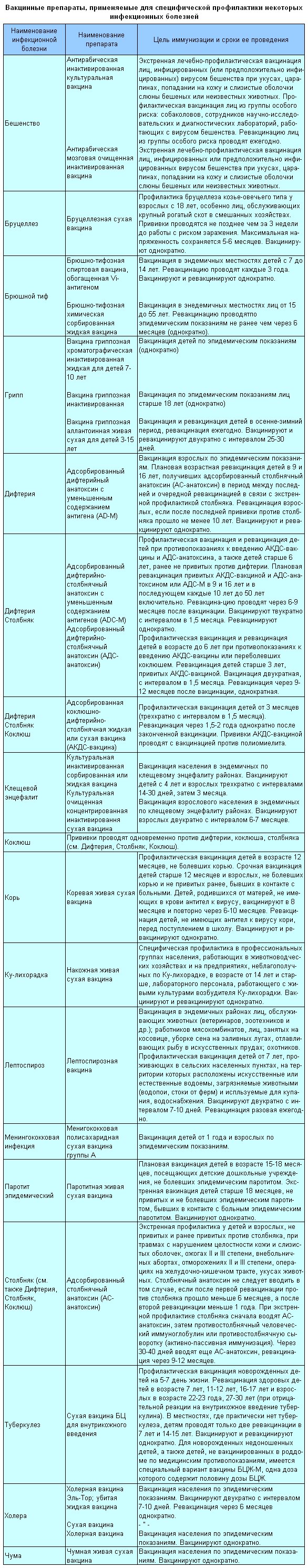 Вакцинные препараты, применяемые для специфической профилактики некоторых инфекционных болезней