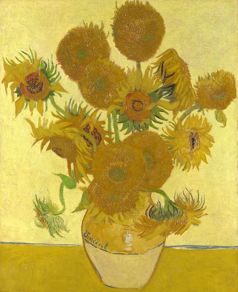 Винсент ван Гог. Подсолнухи на желтом фоне. 1888 год. Масло, холст. Национальная галерея, Лондон. Это четвертый вариант картины, над которой художник работал в Арле в августе 1888 года.