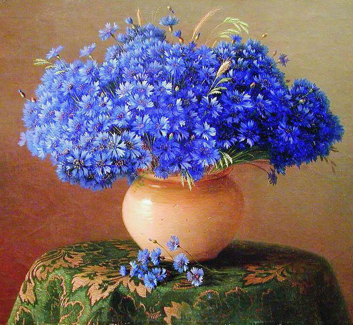 Гавриил Павлович Кондратенко (1854-1924). Натюрморт с васильками. 1900-е годы. Холст, масло. Частное собрание.