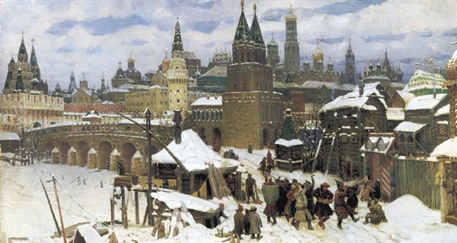 А.М. Васнецов. Всехсвятский каменный мост. Конец 17 века. 1901 год. Холст, масло. Художественный музей, Ярославль.
