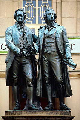 Памятник И. В. Гете и И. Ф. Шиллеру (1875) перед зданием Немецкого национального театра. Веймар.