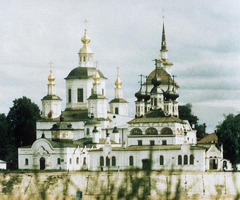 Великий Устюг. Соборное дворище. 17-18 вв. В панораме города со стороны реки доминирует соборный комплекс, получивший название Соборного дворища. Вместе с бывшим архиерейским домом он занимает целый квартал.