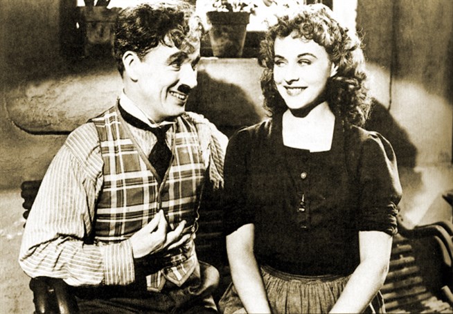 Еврей-парикмахер (Чарли Чаплин) и Ханна (Полетта Годдард) в фильме «Великий диктатор». 1940 год.