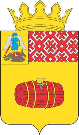 Герб Вельского района был принят 14 декабря 2005 года. В золотом поле лежащая червленая бочка с золотыми обручами и черными потеками дегтя из-под золотой втулки. В серебряной главе червленый орнамент в виде косой решетки со сквозными ромбами в узлах и двойными червлеными косыми крестами в ячеях. В вольной части герб Архангельской области. Щит увенчан муниципальной короной (золотой территориальной пятизубцовой короной). Герб Вельского района создан на основе исторического герба Вельска. Червленая бочка является символом торговли. Во главе щита фрагмент национального русского северного орнамента: двойной скошенный крест (крест Андрея Первозванного) — символ огня, скошенная решетка — символ обработанной плодоносящей земли.