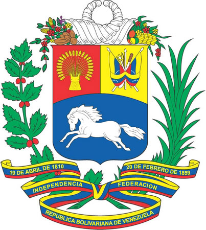 Герб Венесуэлы с 7 марта 2006 года. До этого лошадь на гербе Венесуэлы была повернута в другую сторону.