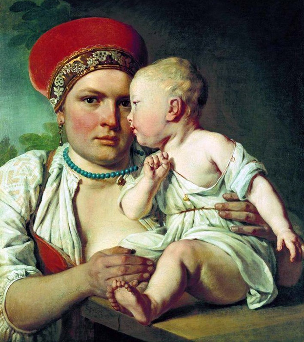 А.Г. Венецианов. Кормилица с ребенком. Начало 1830-х годов. Холст, масло. Третьяковская галерея, Москва.