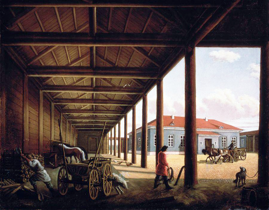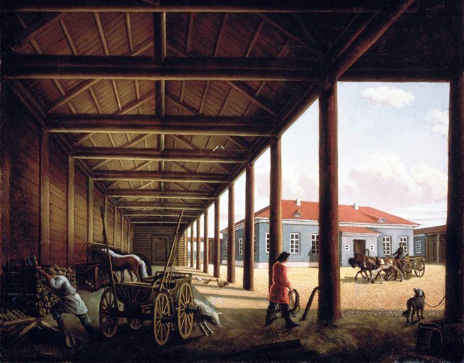 Александра Алексеевна Венецианова (1816-1882). Почтовая станция. Холст, масло. Тверская картинная галерея.