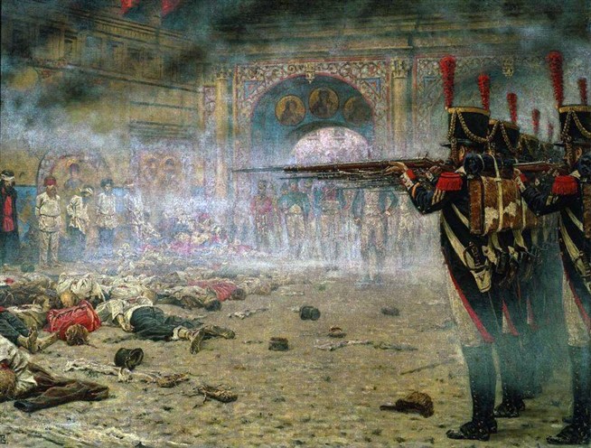 В.В. Верещагин. В покоренной Москве. Расстрел поджигателей в Кремле. 1897-1898 годы. Холст, масло. Исторический музей, Москва.