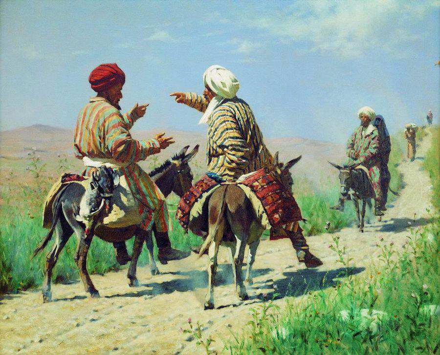 В.В. Верещагин. Мулла Рахим и мулла Керим по дороге на базар ссорятся. 1873 год. Холст, масло. Третьяковская галерея, Москва.