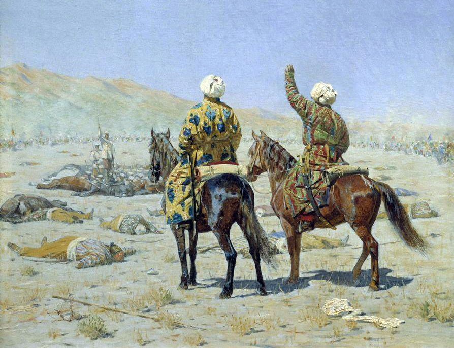 В.В. Верещагин. Парламентеры. «Сдавайся! — Убирайся к черту!» 1873 год. Холст, масло. Третьяковская галерея, Москва.