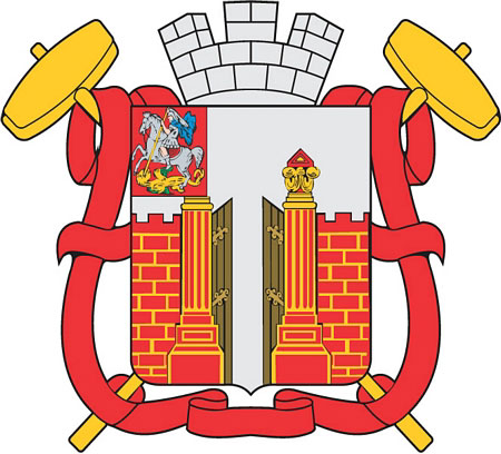 Герб Вереи, утвержденный 16 марта 1883 года. Основолй для него был городской герб, утвержденный 29 октября 1782 года. «В серебряном щите, между двумя червлеными зубчатыми стенами, с золотыми швами, две червленые же вереи, с полуоткрытыми воротами, приборы которых золотые. В вольной части московский герб. Щит увенчан серебряной башенной короною о трех зубцах. За щитом два накрест положенных золотых молотка, соединенных александровской лентою». Вереи в описании — столбы ворот.