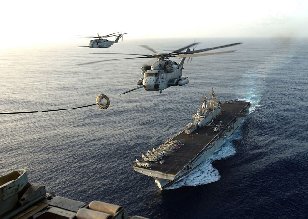 Заправка вертолетов морской авиации в воздухе.