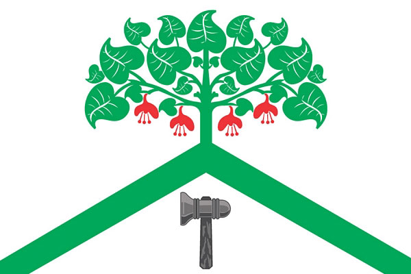 Флаг города Верхняя Салда. На полотнище белого цвета — фигуры городского герба.