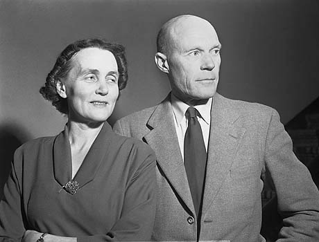 Тарьей Весос со своей женой, поэтом Хальдис Морен Весос. 1940-е годы.