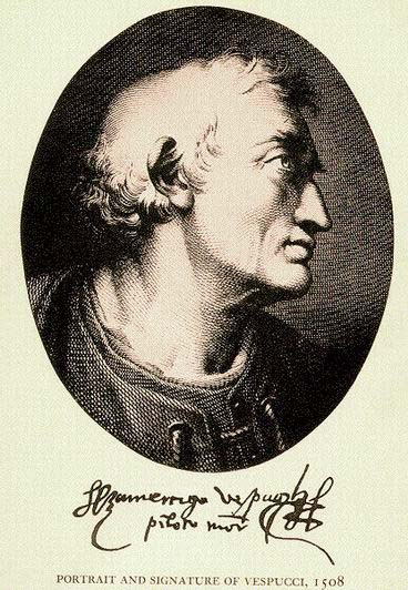 Портрет и автограф Америго Веспуччи. Гравюра.