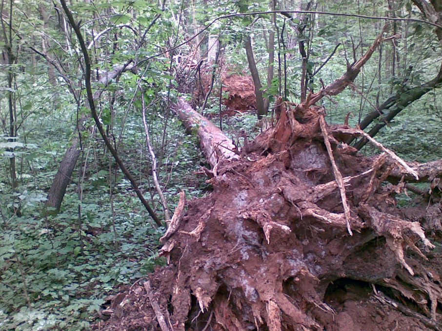 Последствие ветровала в Подмосковье — выкорчеванное дерево.