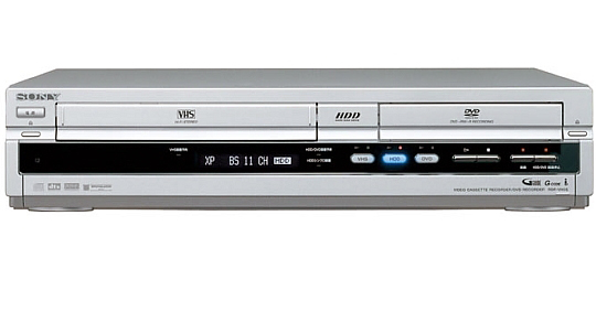 Видеопроигрыватель Sony, поддерживающий три вида информационных носителей: жесткие диски, DVD и магнитные пленки (VHS).