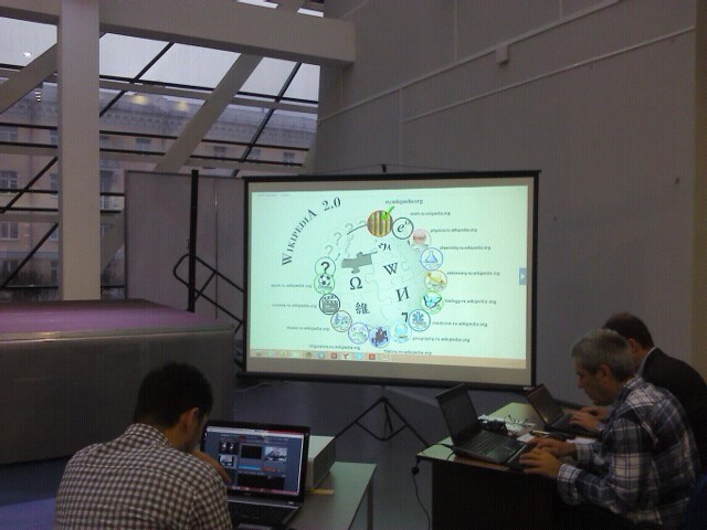 Слайд из презентации Дмитрия Рожкова (фонд «Викимедия»), демонстрирующий возможности развтия Википедии. Вики-конференция в Смоленске, 10 декабря 2013 года. Фото Татьяны Пичугиной.