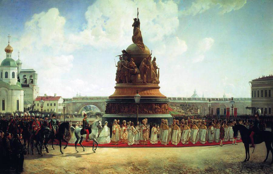 Б.П. Виллевальде. Открытие памятника «Тысячелетие России» в Новгороде в 1862 году. 1864 год. Холст, масло. Нижегородский художественный музей.