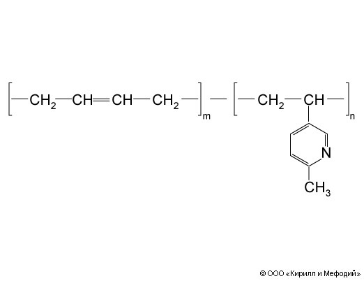 Винилпиридиновые каучуки. Структура макромолекулы сополимера бутадиена с 2-метил-5-винилпиридином.