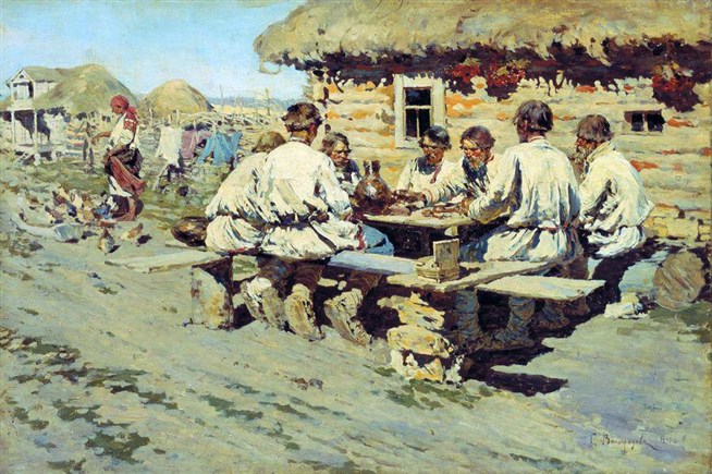 С.А. Виноградов. Обед работников. 1890 год. Холст, масло. Третьяковская галерея, Москва.