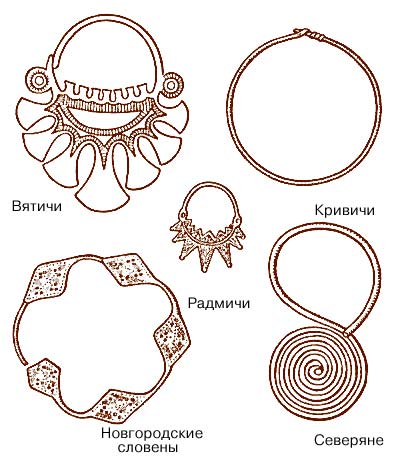 Височные кольца различных племен восточных славян.