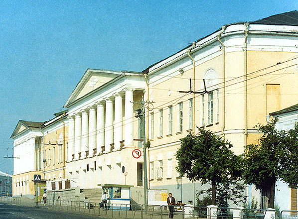 Владимир. Здания Дворянского собрания (1826) и гимназии (1841) в стиле ампир были построены вплотную друг к другу и образуют единый архитектурный ансамбль.