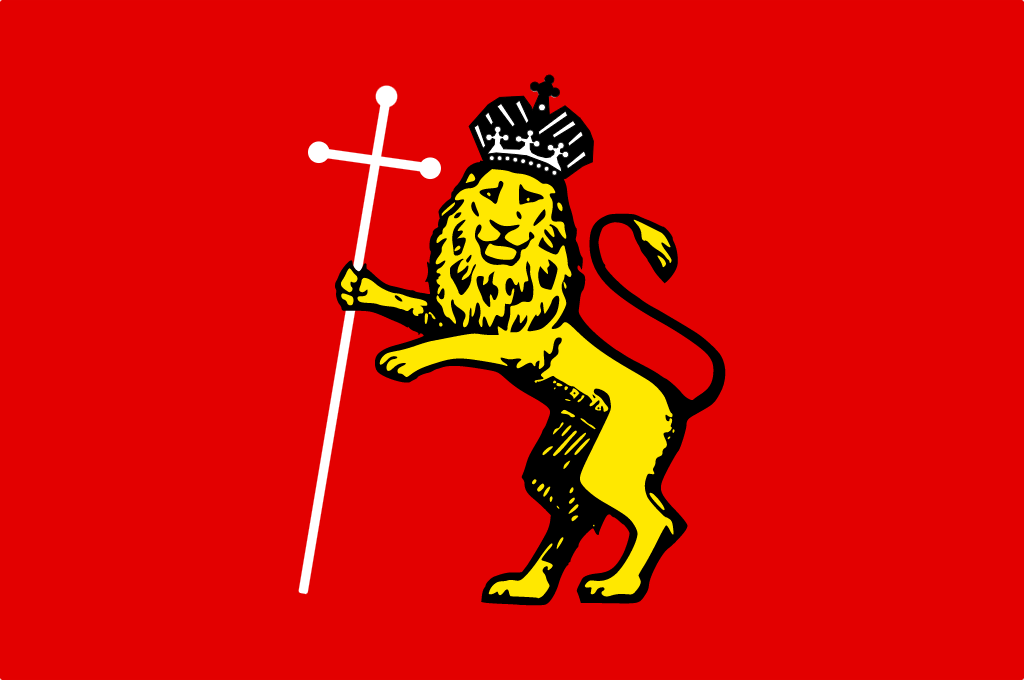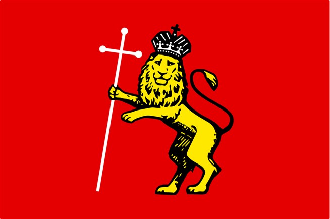 Флаг Владимира. Флаг Владимира был учрежден 13 июня 2006 года. На багряном полотнище основной элемент герба города — стоящий на задних лапах лев в короне с длинным крестом в правой лапе.
