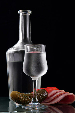 Водка с традиционной закуской.