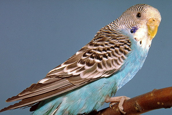 Голубой волнистый попугайчик.