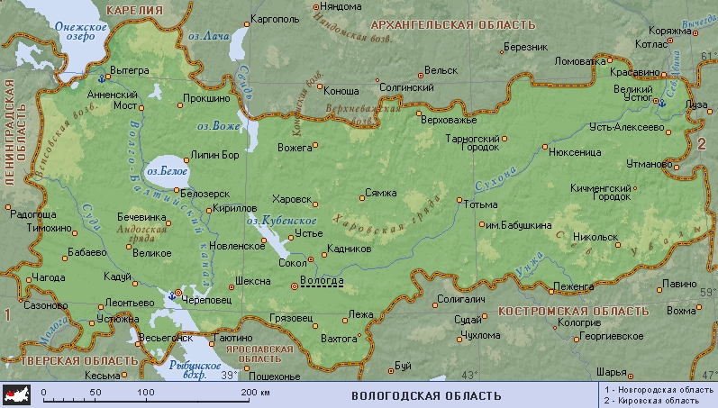 Вологодская область (географическая карта)