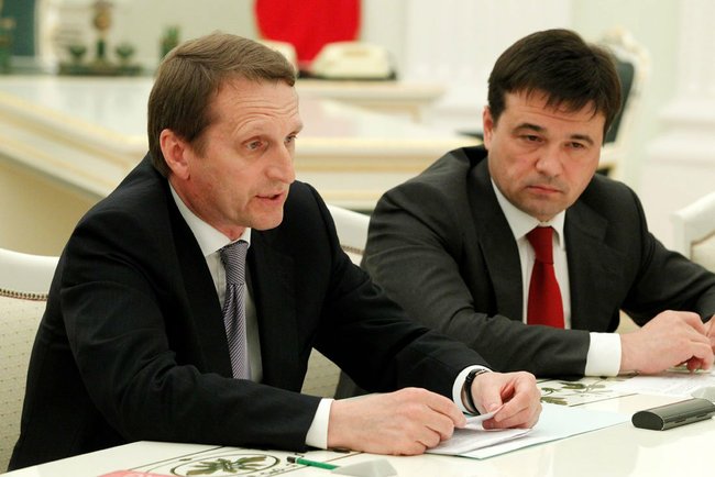 Председатель Государственной думы Сергей Нарышкин (слева) и руководитель фракции «Единая Россия» Андрей Воробьёв. Фото: kremlin.ru