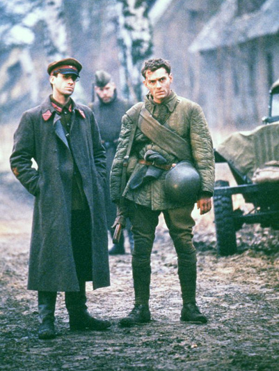 Джозеф Файнс в роли комиссара Данилова и Джад Лоу в роли снайпера Василия Зайцева. Фильм «Враг у ворот».