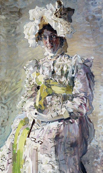 М.А. Врубель. Портрет Н.И.Забелы-Врубель, жены художника, в летнем туалете Empire, исполненном по замыслу художника. 1898 год. Холст, масло. Третьяковская галерея, Москва.