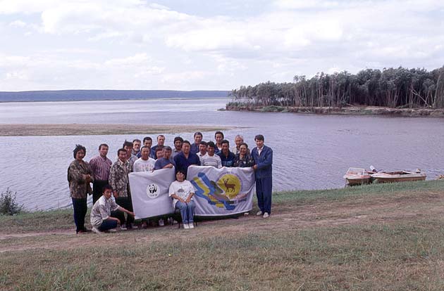 Участники семинара инспекторов охраны природы и представители коренного населения эвенков и эвенов под эгидой WWF. Национальный парк «Ленские столбы». Фото В. В. Никифорова. WWF (Всемирный фонд дикой природы).