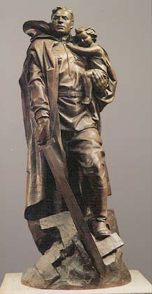 Е. В. Вучетич. «Воин-освободитель». Модель центральной фигуры мемориального памятника-ансамбля в Трептов-парке в Берлине. Бронза. 1948. Третьяковская галерея.
