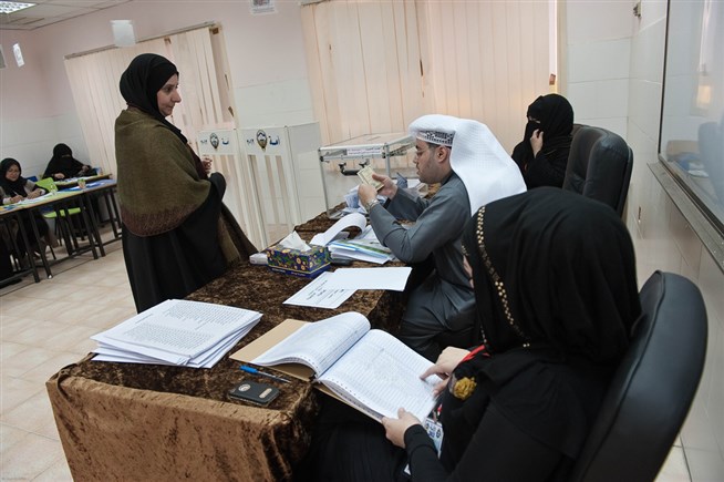 Выдача бюллетеня избирателю. Голосование на выборах в Кувейте. 2012 год. Фото: kuwaitelections2012, flickr