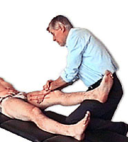 Выжимание основанием ладони и бугром большого пальца с отягощением на передней поверхности бедра.