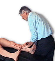 Выжимание основанием ладони и бугром большого пальца с отягощением на передней поверхности голени.