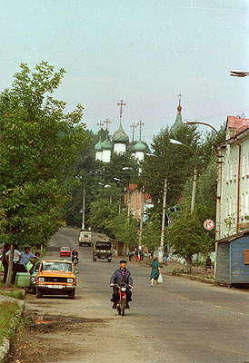 На одной из улиц города Вязники. На заднем плане: Казанский собор.